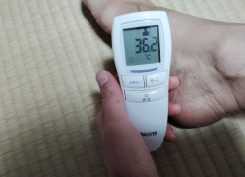 ちなみに最初と最後に、非接触体温計を使って足の体温を測りました。0.5度から1度ほど上がっていました。