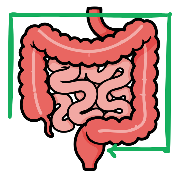 大腸ってそもそも、こんな感じで、ぐるんと小腸を囲むような形をしています。